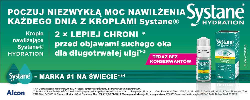 Krople SYSTANE®HYDRATION wskazane są do stosowania w terapii zespołu suchego oka, ponieważ czasowo łagodzą odczuwane objawy. Przyniosą ulgę podczas odczuwanego pieczenia i podrażnienia oka. SYSTANE®HYDRATION są idealne do nawilżania i nawadniania silikonowo-hydrożelowych oraz miękkich (hydrofilnych) soczewek kontaktowych jednorazowych oraz noszonych w trybie dziennym lub przedłużonym.