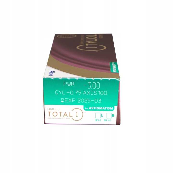 Opis produktu: Dailies Total 1 for Astigmatism to nowoczesne soczewki jednodniowe, które zapewniają wyraźne widzenie i komfort przez cały dzień. Zaprojektowane specjalnie dla osób z astygmatyzmem, łączą zaawansowaną technologię korekcji wad wzroku z wyjątkowym komfortem noszenia, nawet przez długie godziny.